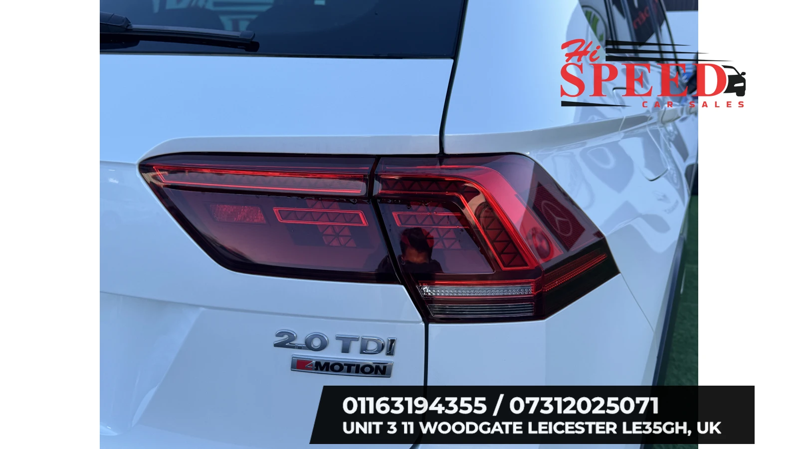 Volkswagen Tiguan R-Line 4Motion | 2019 | 2.0 TDI | Automatic | Only 25,500 Miles | Full Leather | Digital Cockpit | Fully Loaded Available now at HiSpeed Car Sales, Unit 3, 11 Woodgate, Leicester, LE3 5GH. π 07312 025071 (Call or WhatsApp) A stunning VW Tiguan R-Line 4Motion finished in white with only 25,500 miles. This top-spec R-Line model combines sporty styling with luxury comfort, advanced technology, and powerful all-wheel drive performance. A perfect family SUV with premium features throughout. βΈ» π§ Vehicle Details: β’ Model: VW Tiguan R-Line 4Motion β’ Year: 2019 β’ Engine: 2.0 TDI β’ Drive: 4Motion AWD β’ Transmission: Automatic β’ Mileage: Only 25,500 miles β’ Color: White β’ Interior: Full Leather β’ HPI Clear β’ 2 Keys Included βΈ» β R-Line Premium Features: β’ β Digital Cockpit β’ β Head-Up Display β’ β R-Line Exterior Styling & Badging β’ β Full Leather Interior β’ β Heated Front & Rear Seats β’ β Electric Adjustable Front Seats β’ β Auto Boot (Power Tailgate) β’ β Adaptive Cruise Control β’ β Push Start/Stop Button β’ β Front & Rear Parking Sensors β’ β Park Pilot Assistance β’ β Dual Zone Climate Control β’ β Multifunction Steering Wheel β’ β¦and many more luxury, safety & tech features βΈ» π οΈ What You Get: β’ π‘οΈ 12 Months Warranty β’ π§° 2 Free Services β’ π Nationwide Delivery Available β’ π Test Drives Available β Message us on WhatsApp